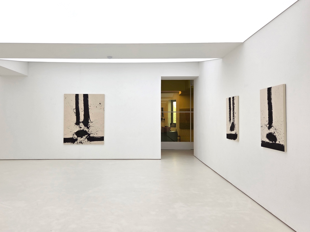 그가 ‘겹’과 ‘사이’ 연작에서 선보이는 사선 필치의 리듬감은 우주적 순환을 닮았다. 이번 전시의 백미는 ‘폭포’ 연작의 진화다. 1990년대부터 시작된 이 시리즈는 초기에는 4m가 넘는 화면에 광폭한 필치로 생명의 분출을 표현했으나, 2025년 신작에서는 단순화된 몇 개의 획만으로 폭포의 본질을 포착한다. 광목천 위에 툭 던져진 획들은 오히려 내면의 성찰을 강조하며, 격렬한 에너지 대신 고요한 사색의 흔적을 남긴다.