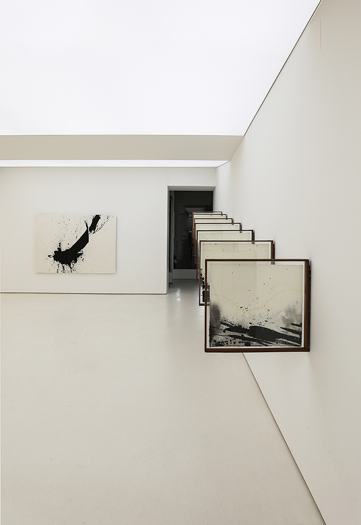 임현락의 <1 초 수묵>연작들은 작가가 언젠가 한 육상선수의 100미터 달리기 기록을 보며 착안한 ‘1 초’, 이 짧은 시간 동안 움직인 신체의 거리가 10미터를 휠씬 넘었다. 우리는 이 삶을 살아가며 얼마나 많은 사람과 풍경을 만나고 사건을 겪는가. 그는 획이 내포한 순간성에 주목하여 ‘1 초’ 라는 시간적 개념을 행위의 조건으로 설정하여 극히 한정된 시공간의 밀도 속에 자신을 몰입시키고, 그 속에서 하나가 되고자 하였다. 찰나와 영원의 접점을 추구했던 ‘1초 수묵’ 연작의 한 획이 움직이는 흐름을 따라가다 보면 우리는 수묵의 본질인 생명의 기운을 화폭 위로 뿜어내기 직전, 집중과 긴장으로 일 순간 화석이 되어버린 시간의 멈춤, 즉 순간의 확장을 경험하게 된다. 2000년 대장암 수술, 2018년과 2019년 연이어 또다시 암수술을 받고 회복한 임현락은 죽음에 대한 두려움 대신 삶을 보다 달관하고 관조할 줄 아는 자세를 가지게 되었다. 이런 삶의 태도는 이번 전시에서 많은 것을 들어내고 본질만 추구하여 이전보다 훨씬 여유로운 수묵의 유희가 펼쳐진 작업들이 전시된다.