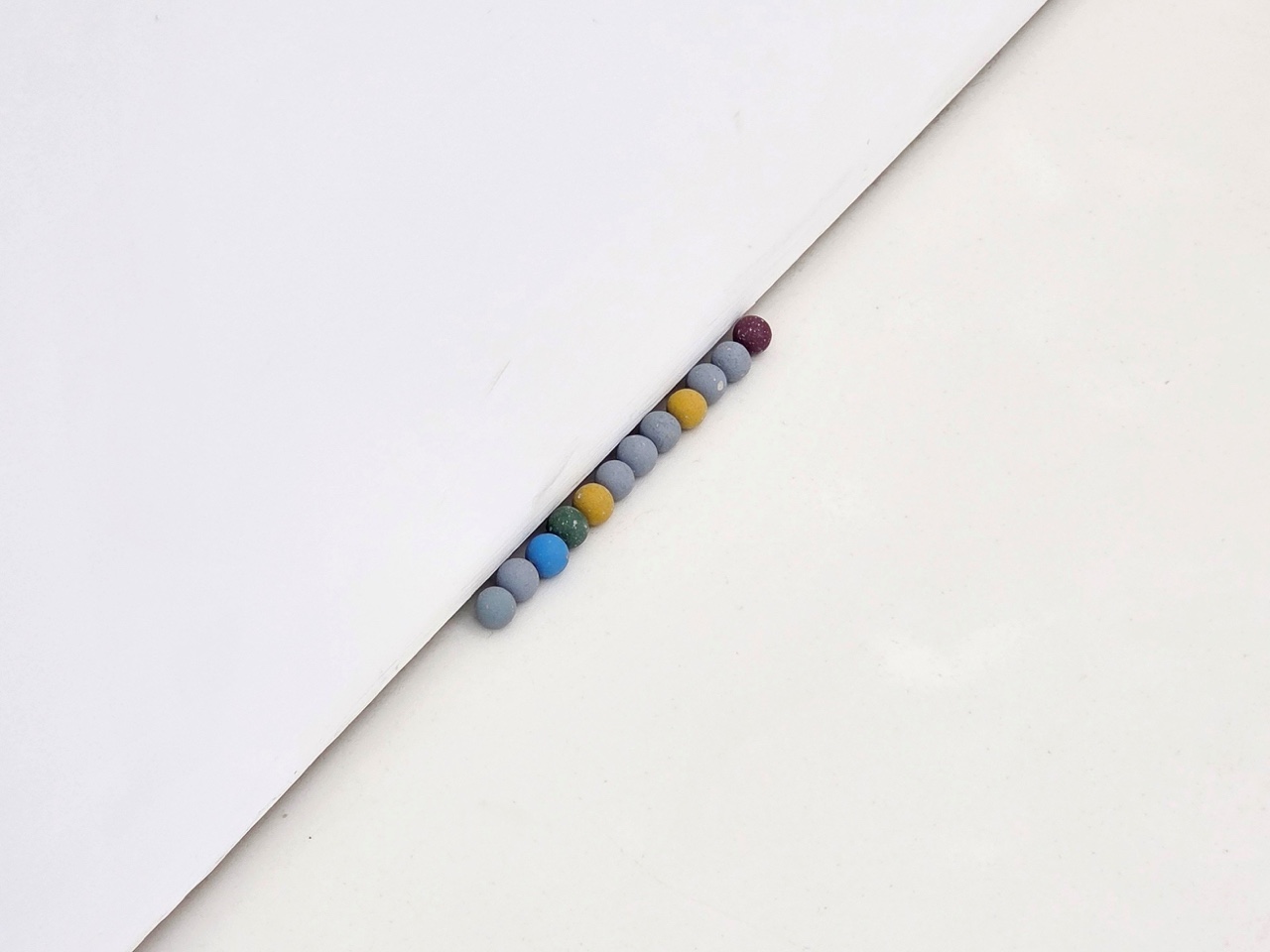 <모시 단청>은 전시장 벽의 색면에 등장하는 격자 선의 단청 벽화이다. 작가는 그리드 구조를 단청의 색으로 변주하는 방식으로 작은 모형과 큰 구조를 통해 다양하게 실험한다. 그리드는 모시 천 씨실 날실의 짜임의 형태로, 문살의 우물 정자 형태로 표상되는 동시에 무수한 빈 공간을 품은 구조이다. 다양한 문화에서 탄생한 격자 형태들은 이질감 없이 이슬기의 작업 언어 안으로 통합되어 전통을 기하학적 형태 안에 담고 실험하는 그의 주요 모티브로 존재해 왔다.