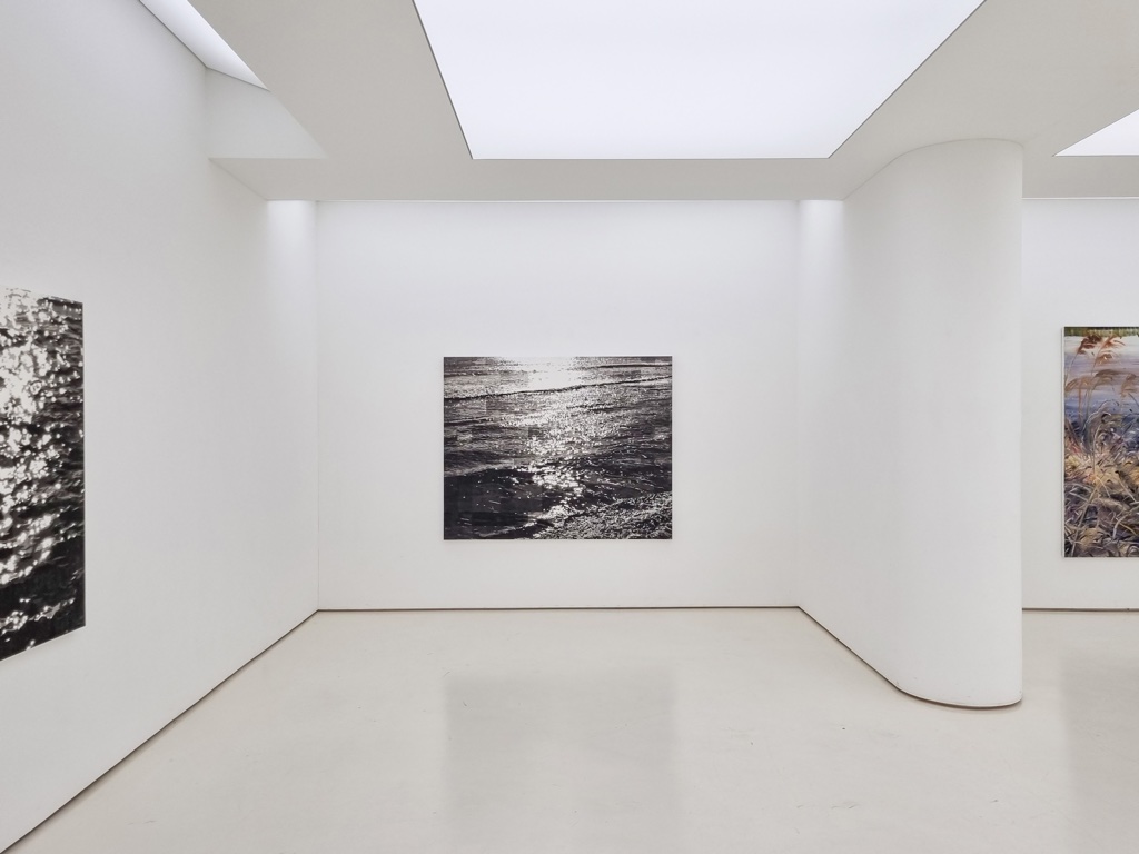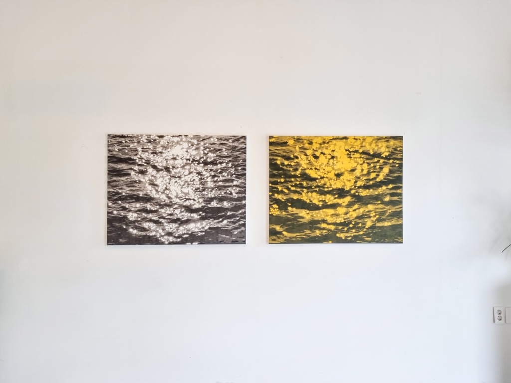 권세진은 주제로 두 가지의 유형의 작품을 만나게 된다. 첫 번째는 수묵으로 바다의 윤슬을 묘사한 “조각 그림” 연작이다. 잔잔히 출렁이는 바다의 미묘한 변화를 섬세한 모노톤으로 드러내는 그의 작업에서 윤슬의 아름다움, 찬란함, 고요함, 은은함을 발견한다. 그 따스한 빛을 통해, 잠시 그 날의 일상을 되돌아보면서 마음이 정화되는 치유와 회복의 시간을 갖도록 한다.