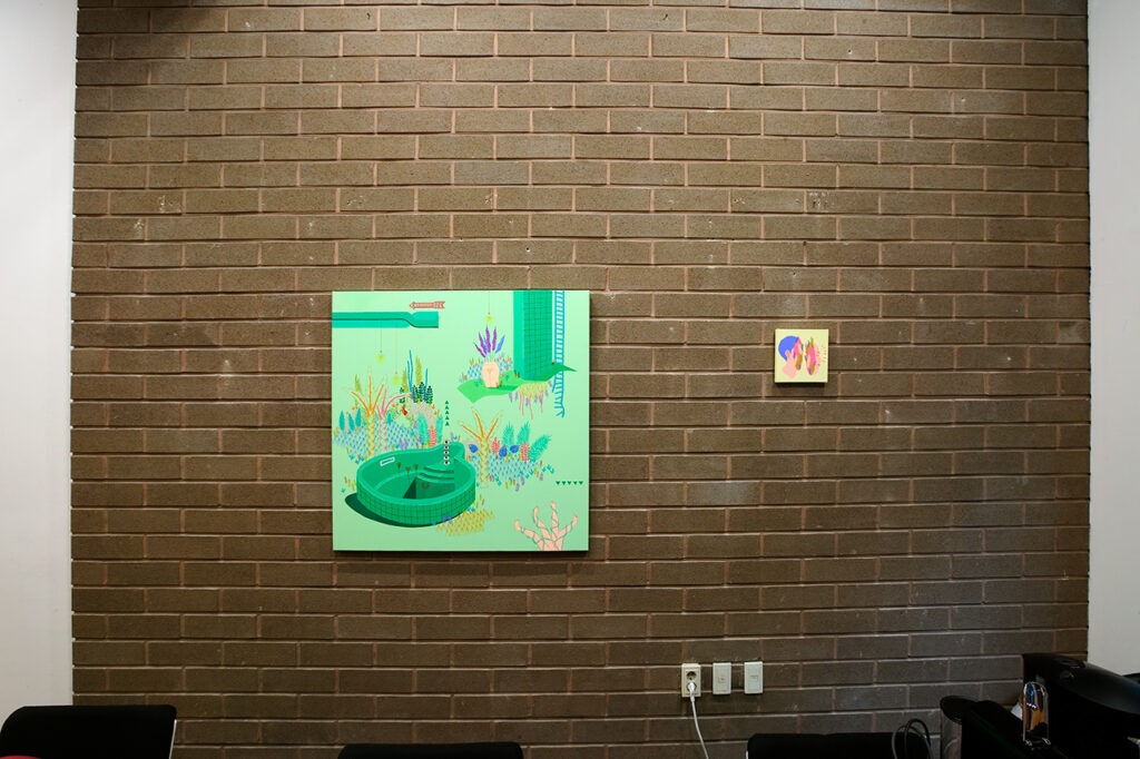 박규석은 어두운 밤에 집으로 향하는 길목에 마주하는 숲에서 그가 느끼는 이미지를 그려낸다. 그 이미지는 판타지에 가깝다. 그림이 보여주는 환상적 실재는 개인의 주관적인 사유를 작품으로 객관화시켜 또 하나의 세계를 만들어내는 시도인 셈이다. 또 다른 회화 작가 박운형은 20대 여성이 마주하는 단조로운 일상의 무력함과 구속감을 자신만의 정원을 그려서 그곳으로 탈주한다. 말하자면 그림 속 정원은 그녀에게 억압된 현실로부터의 디아스포라이다. 윤보경의 작업은 아무도 몰래 혼자 간직하고픈 것들을 서랍장에 숨겨두었던 어린 시절의 기억에서 출발한다. 따라서 그녀의 작업은 가구류가 오브제로 쓰인다. 그 속에 사적인 이야기가 담겨있는 셈이다. 서랍 내부에 담긴 사적인 역사는 과장되게 장식되었으며, 동시에 고풍스러운 감을 전하는 겉모습과 대조되거나 동화되면서 흥미를 이끌어낸다.