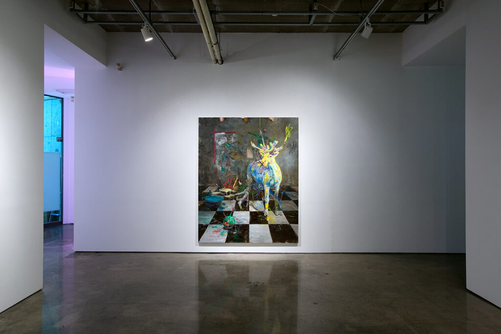 박규석은 밤에 집으로 돌아가는 어두운 숲길에서 마주하는 감정을 <달빛중독>의 세계로 펼쳐 보인다. 작가의 망막에 기록된 일상의 풍경은 아크릴과 오일, 락카 같은 색 재료로써 구별된 층위로 겹쳐진다. 어둠을 밝히는 달빛은 앞으로 더듬더듬 나아가는 이의 진로를 오히려 혼란스럽게 만든다. 현실을 비추는 회화 속에서 달빛은 한 개인이 거스를 수 없는 사회 구조로 표현되며 어떤 면에서는 현실을 바로 보게 한다. 작가는 일종의 열린 결말을 제안하며 관객이 달빛에 물든 스스로의 이야기를 완성할 조건을 그림 속에 장치해 둔 셈이다.