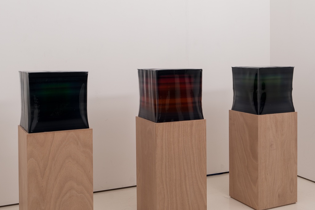 이번 전시 작품은 투명도가 높다. 작품 속이 다 비친다. 변화라면 뚜렷한 변화다. 이전까지 제작한 작품〔前作〕들은 레진몰탈을 불투명하게 사용했다. 따라서 불투명한 레진몰탈이 지지체인 패널을 감싸면서 패널은 사라진다. 작품이 수심 깊은 물속 같다. 레진몰탈이 불투명해서 속이 보이지 않는다. 하지만 이번에 선보이는 작품은 다르다.