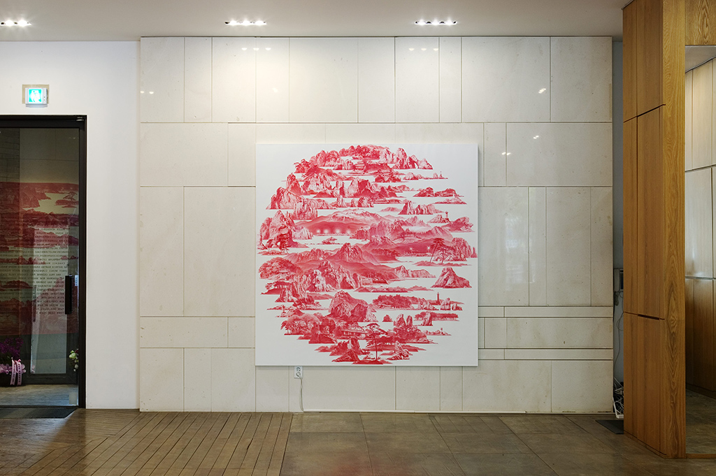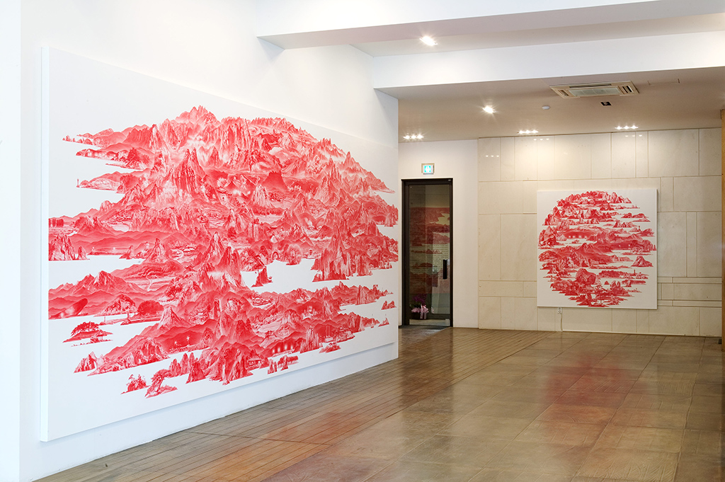 붉은 색의 산수화로 잘 알려진 화가 이세현의 개인전 <붉은 산수 Red Sansu>가 갤러리 분도에서 열린다. 린넨 천을 덮은 캔버스에 유화로 완성한 그의 풍경화는 실재와 관념이 엉켜서 작가의 메시지를 전달한다. 작가는 거제도에서 태어나서 섬과 붙은 통영을 오가며 어린 시절을 보냈다고 한다. 원형으로 남은 섬들과 바다와 포구의 이미지는 그가 그린 그림의 구도에 그대로 남아있다. 작가는 화가가 되기로 결심을 하고 부산으로 고교 진학을 하면서 타지생활을 시작했다. 이후 홍익대학에서 회화를 전공하면서 1980년대의 한국 격변기를 대학생 신분으로 보냈다. 작가의 그림에 깔린 사회비판 내지 현실참여의 은유는 바로 이때 형성되었던 것 같다.